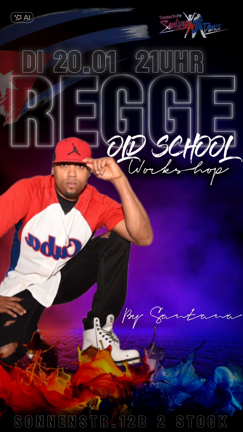 REGGAE OLD SCHOOL WORKSHOP Posted by Santana in Reggaeton, Workshop | Preis: 20€ Date: Di., Jan. 20, 2026 Zeit: 21:00 - 22:30 Location: Sonnenstraße 12b/2. Stock