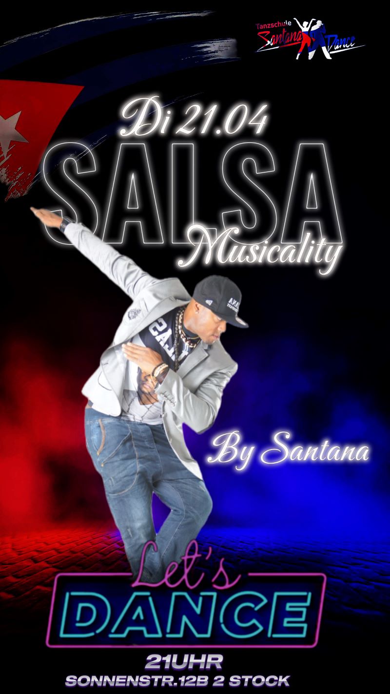 SALSA MUSICALITY WORKSHOP Posted by Santana in Salsa, Workshop | Preis: 15€ Date: Di., Apr. 21, 2026 Zeit: 21:00 - 22:30 Location: Sonnenstraße 12b/2. Stock